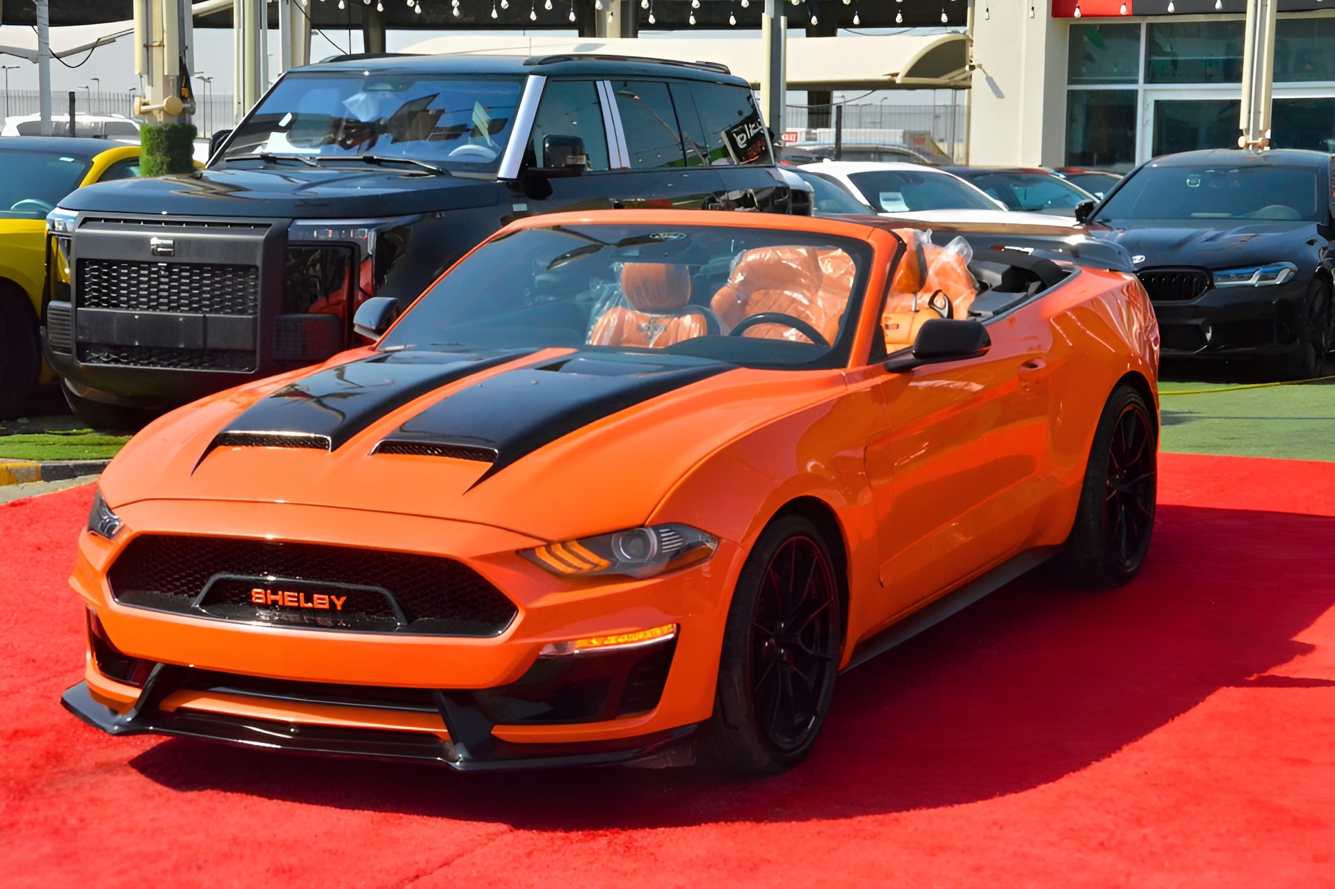 The 2023 Mustang GT Premium Convertible is powered by a legendary 5.0L V8 engine producing 435 HP, delivering raw American muscle performance with smooth automatic transmission. This unit is fully modified with Shelby body kit, enhancing its aggressive styling and road presence.