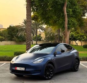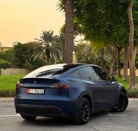 Sale 2024 Tesla Model Y Standard Range Dubai is a stylish and efficient electric SUV, offering impressive range, cutting-edge technology, and zero-emission driving. This GCC-spec example has just 5,000 km, comes with battery and drive unit warranty valid until 2030, and remains in brand-new condition with full agency service history. Finished in dark blue with matte PPF (AED 18,000 value) and no accident history, it includes extras worth AED 20,000 such as an additional driver screen, ambient lighting, carbon fiber spoiler, panoramic cover, protective rim covers, and automatic front trunk closing. With a single lady owner and complete peace of mind, this Model Y is priced at AED 147,000 (USD 40,200)—a perfect choice for those seeking luxury, performance, and sustainability in Dubai.