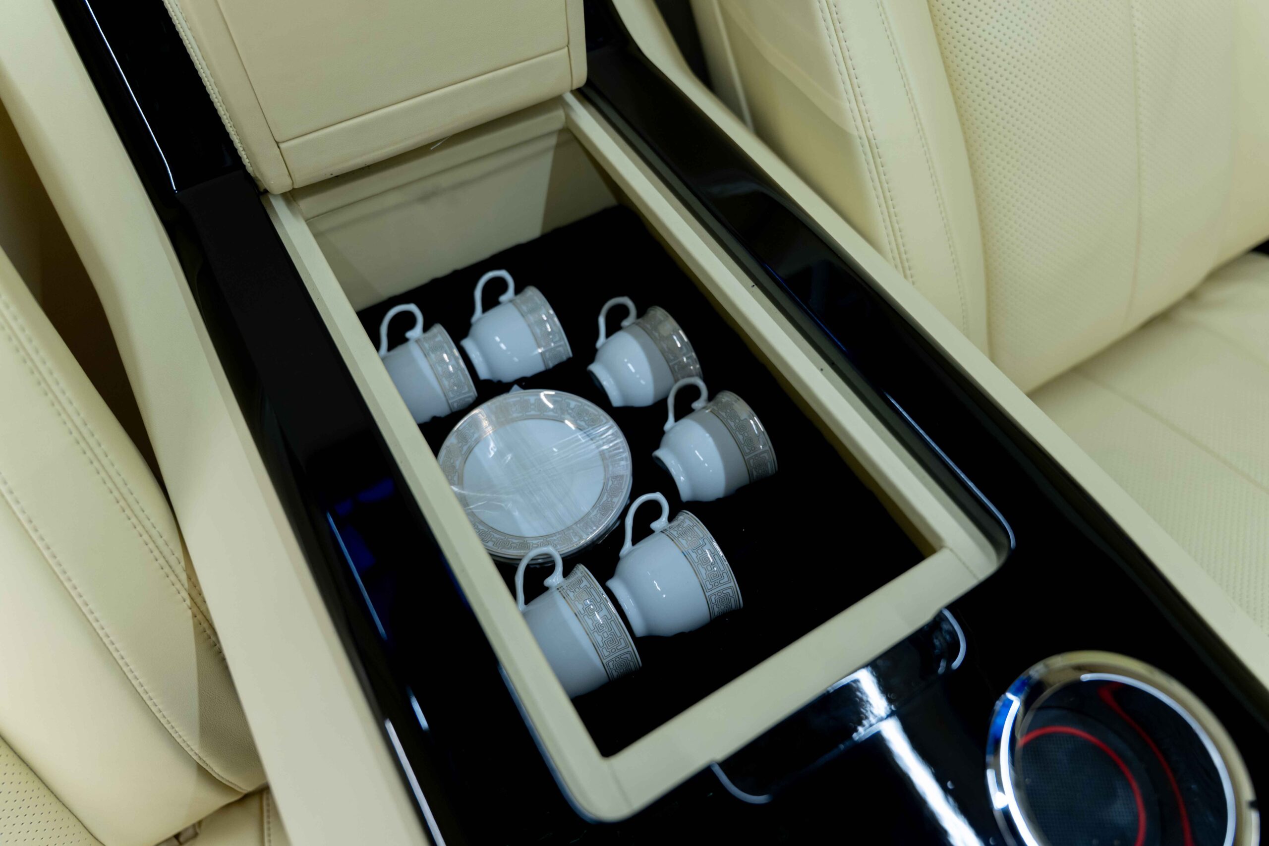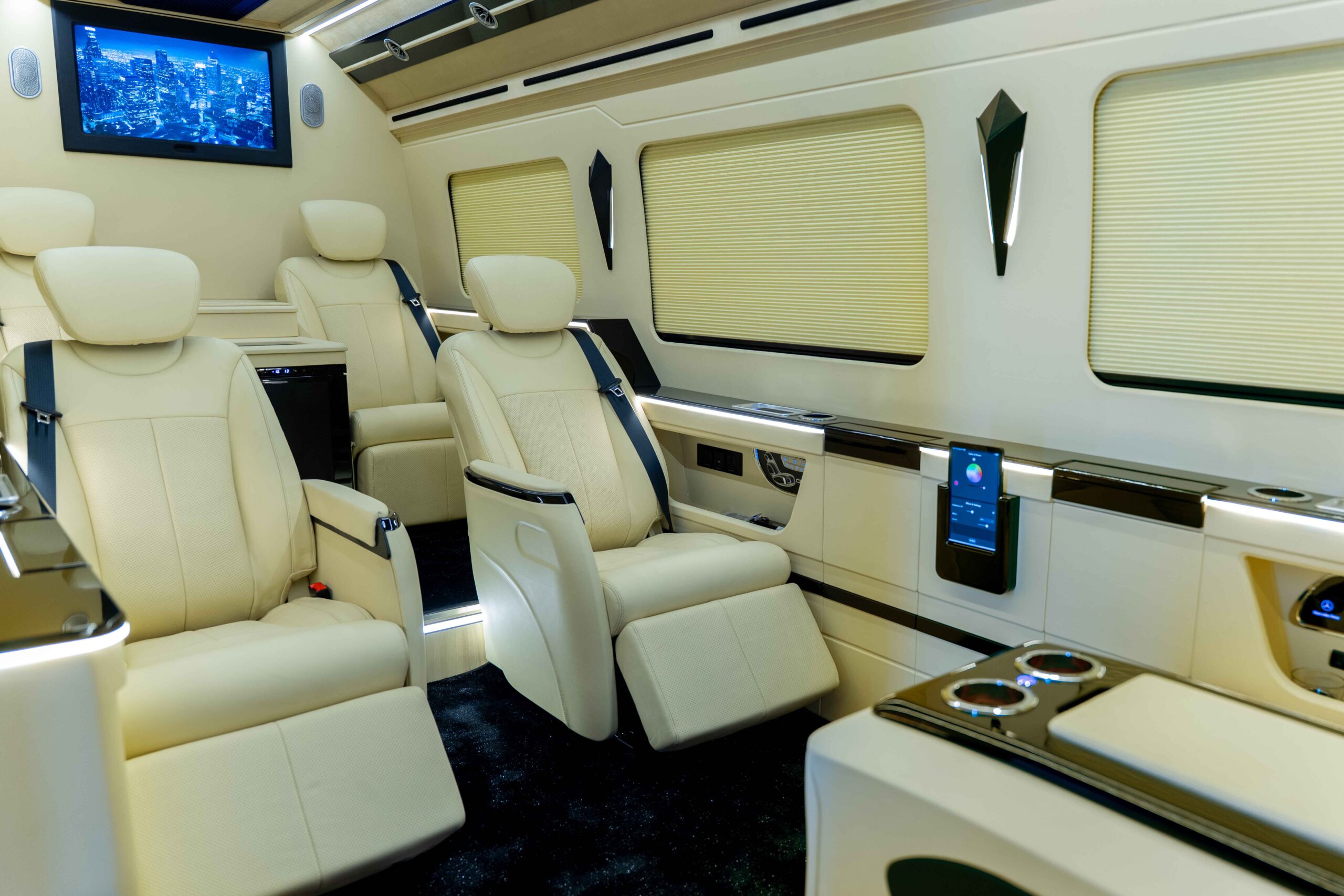 Onboard Amenities: Built-in Espresso Machine, rear mini-fridge, and wireless intercom for discreet communication with the driver.